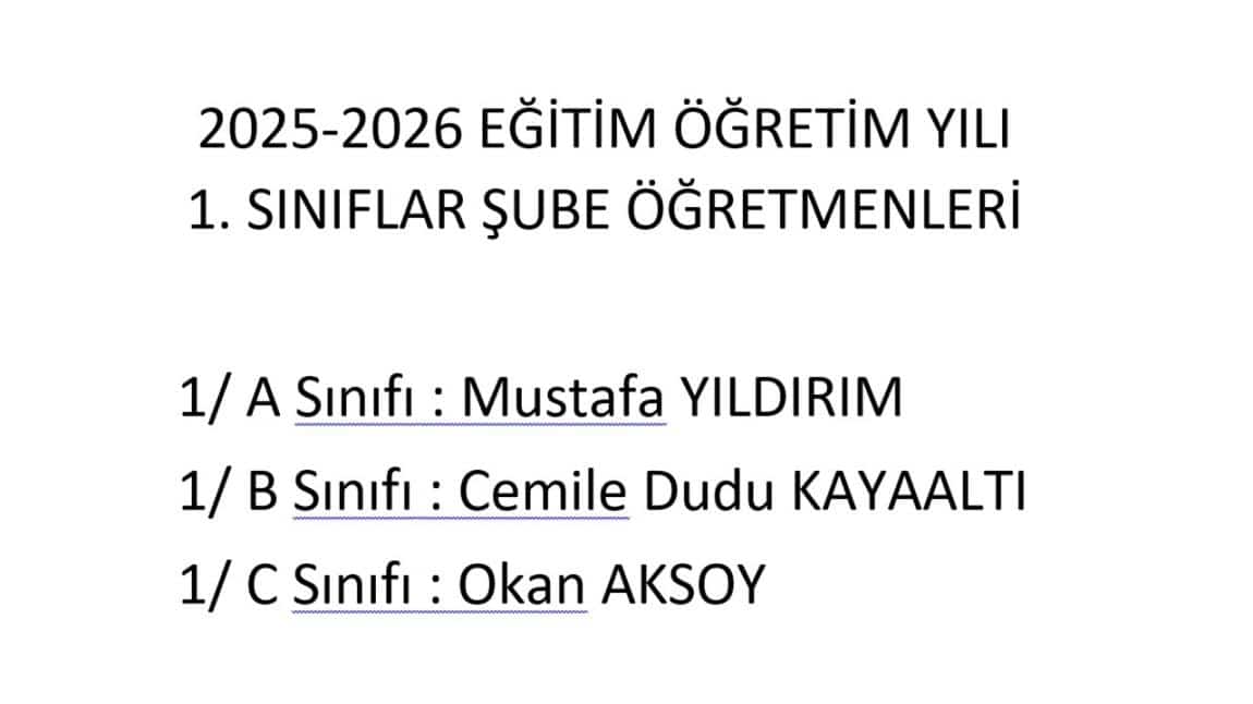 2025-2026 EĞİTİM ÖĞRETİM YILI 1. SINIF ŞUBE BELİRLEMELERİ VE ...